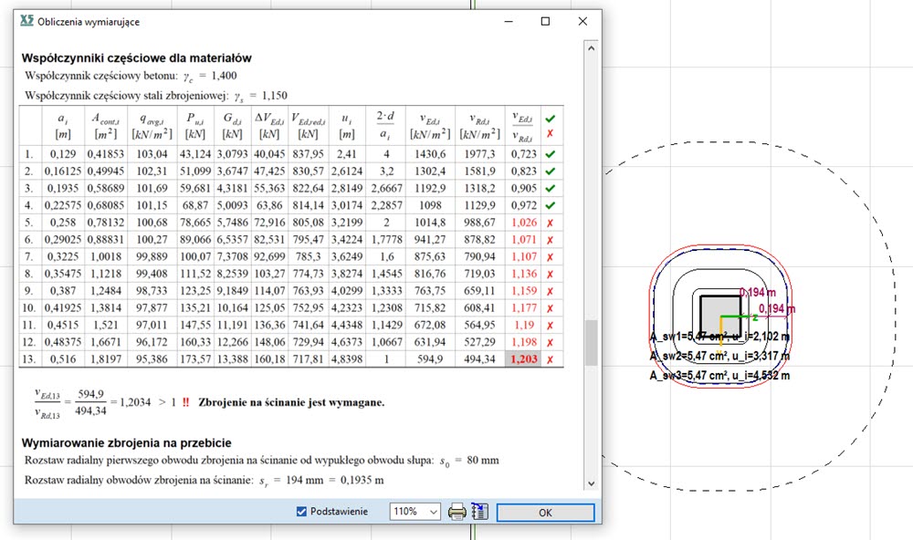 Kolejne usprawnienie, którego potrzebę zgłaszało nam wielu projektantów, zawitało do modułu RC3. Podczas sprawdzenia płyty fundamentowej na przebicie AxisVM wykonuje obliczenia nie tylko w jednym obwodzie kontrolnym (2d), ale również na pośrednich obwodach od krawędzi słupa do odległości 2d, zgodnie z punktem 6.4.4 (2) Eurokodu 2.