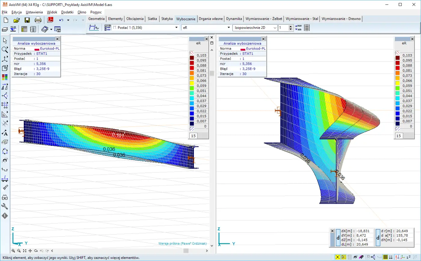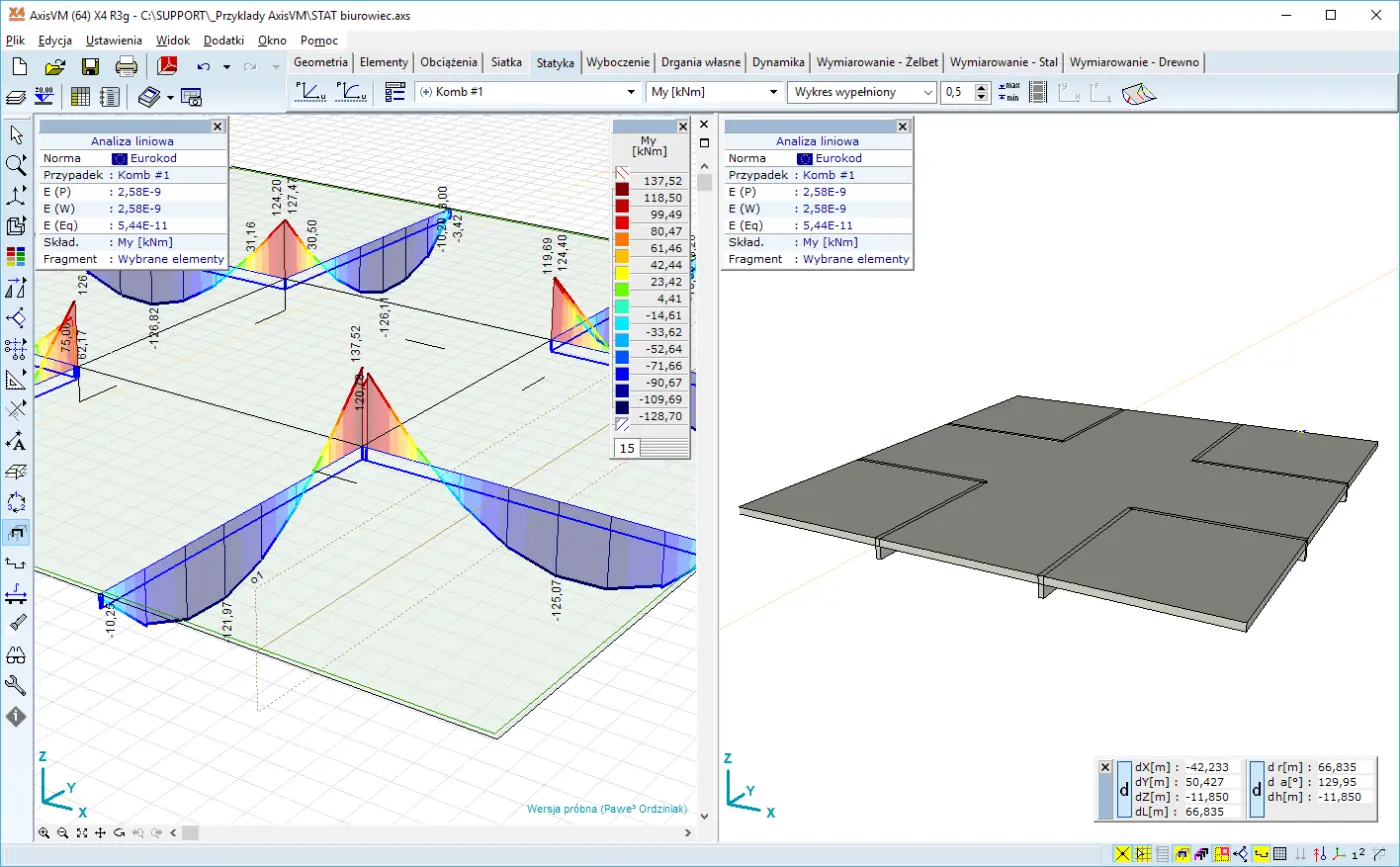 Analiza statyczna to podstawowy typ analizy wykorzystywany przy projektowaniu. W AxisVM możesz przeprowadzić analizę liniową lub nieliniową.