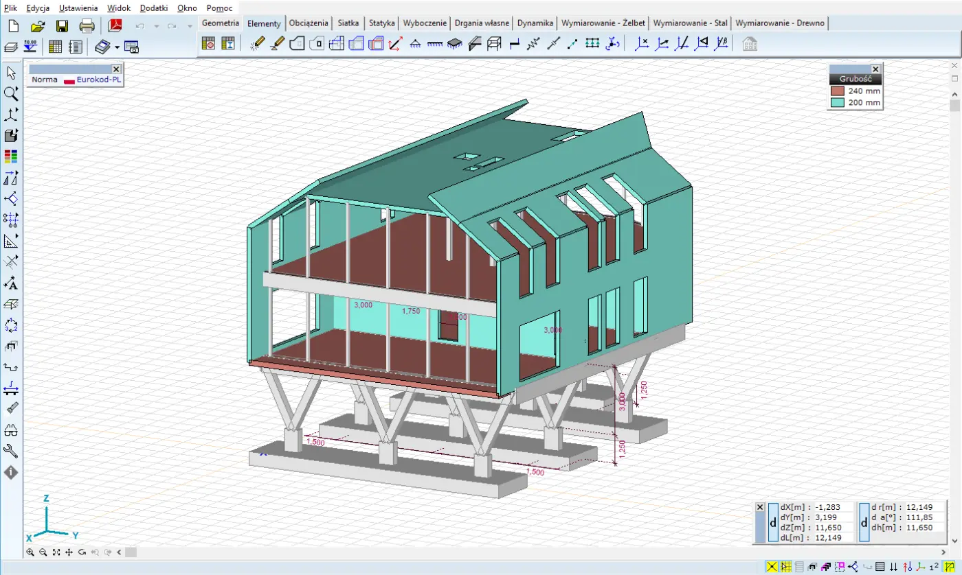 Po wykonaniu analizy statycznej/dynamicznej/sejsmicznej możesz przejść do wymiarowania (np. sprawdzenia warunków nośności) poszczególnych elementów konstrukcji (żelbet, stal, drewno, fundamenty, mur). Przeprowadzone wymiarowanie będzie zapisane w jednym, globalnym pliku z wynikami.