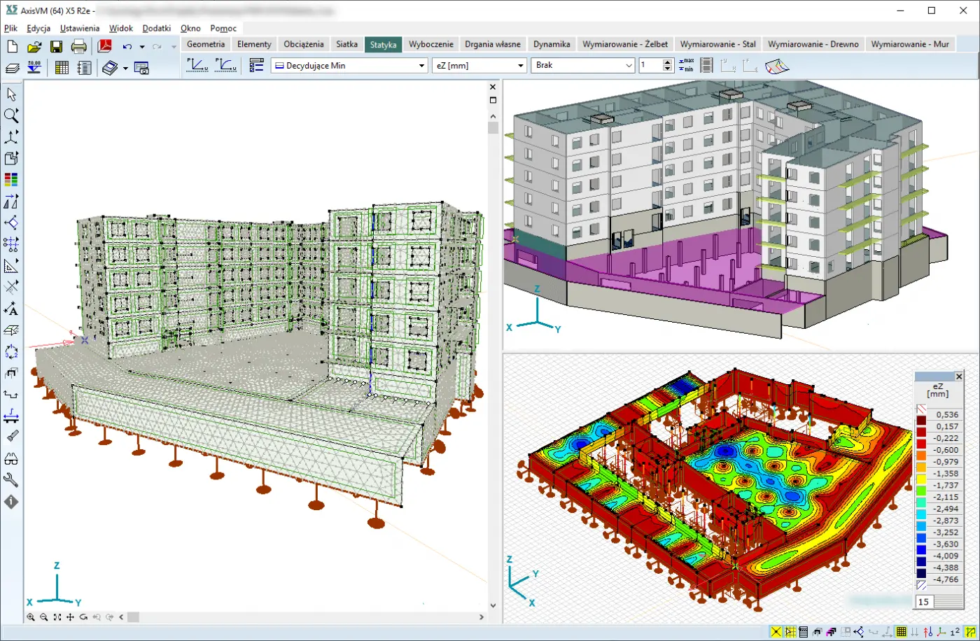 AxisVM bazuje na Eurokodach z załącznikami krajowymi (PN-EN). Już na etapie dodawania obciążeń zasugerowane zostaną odpowiednie współczynniki, a automatyczny generator kombinacji normowych znacznie ułatwi proces analiz i późniejszego wymiarowania konstrukcji.