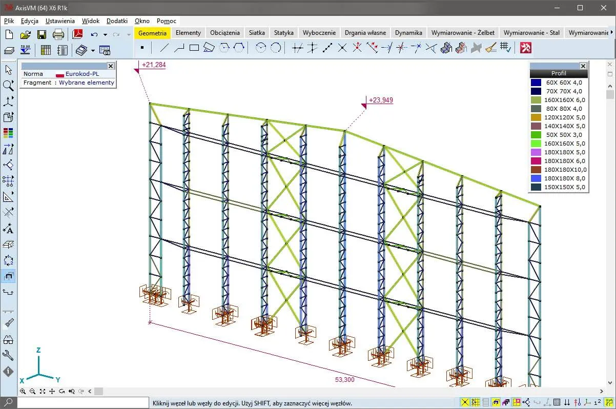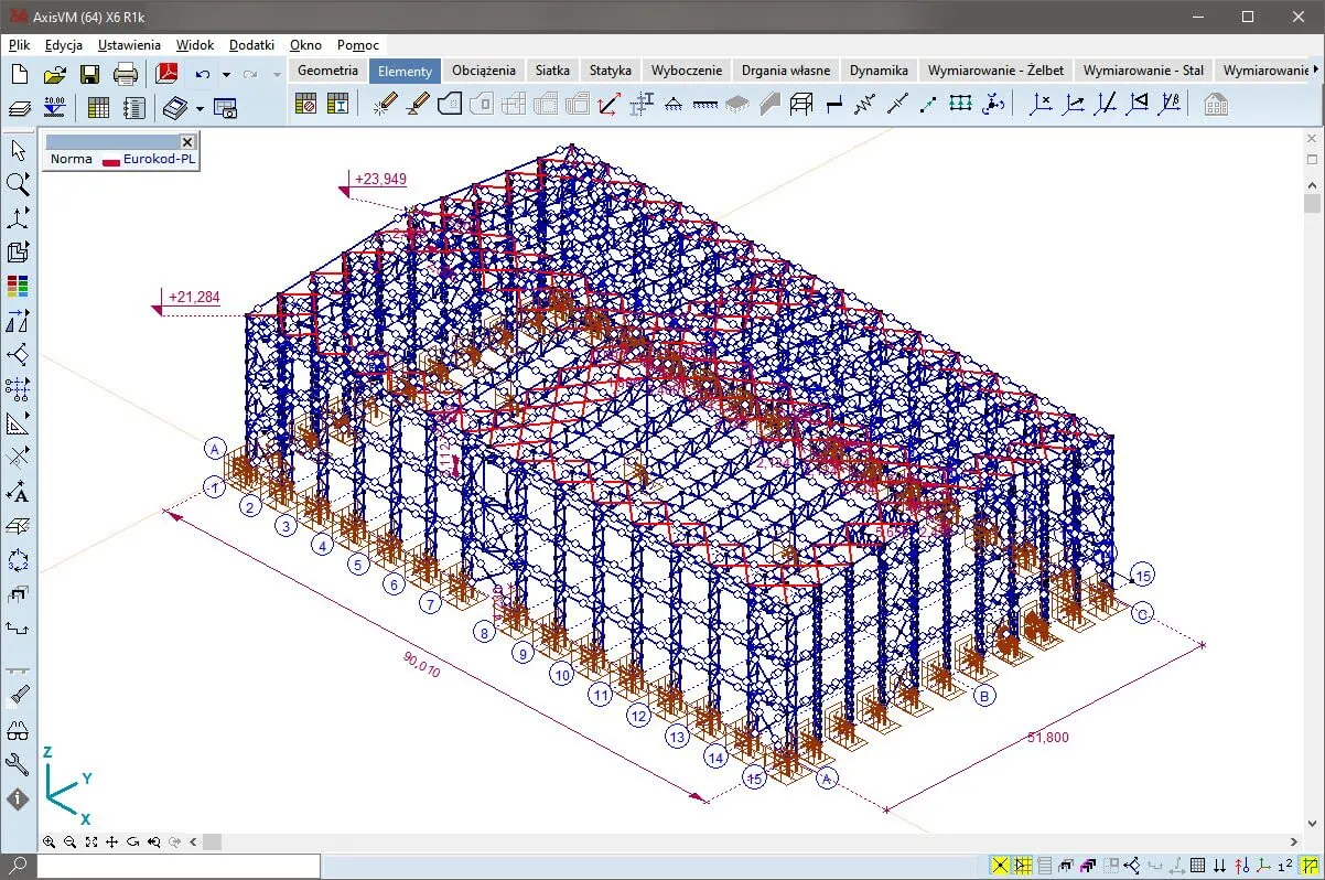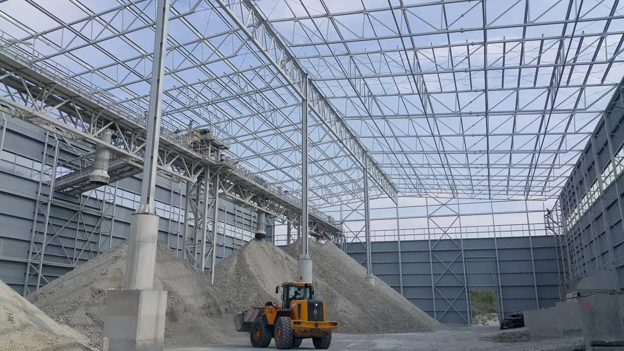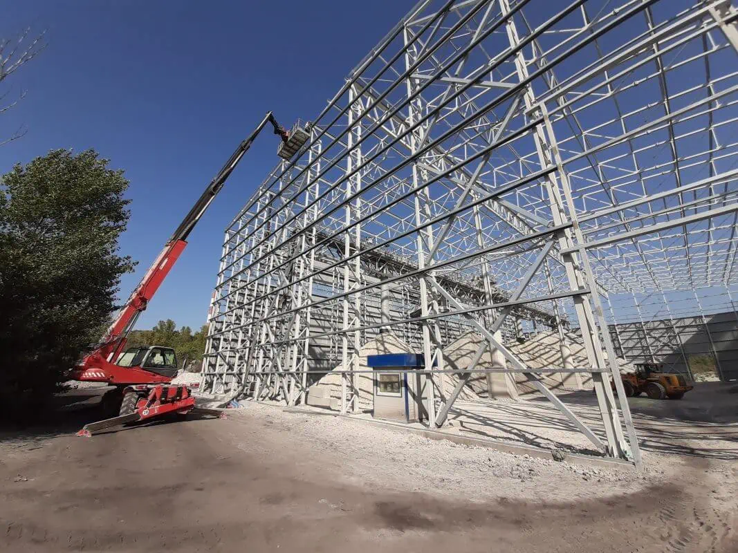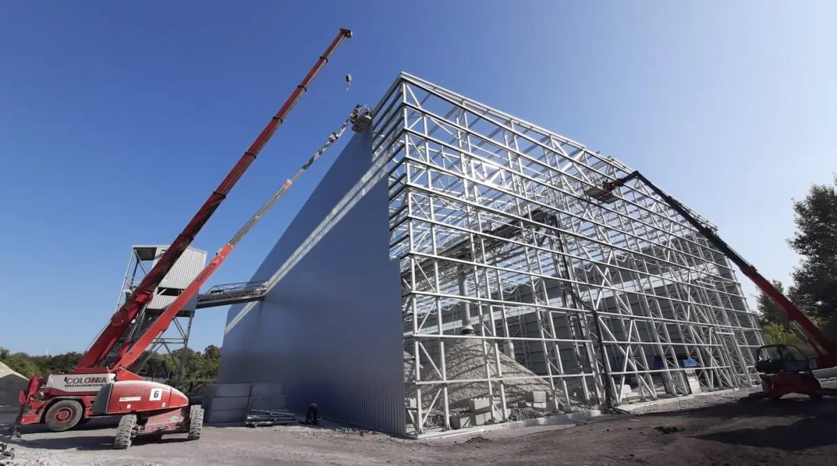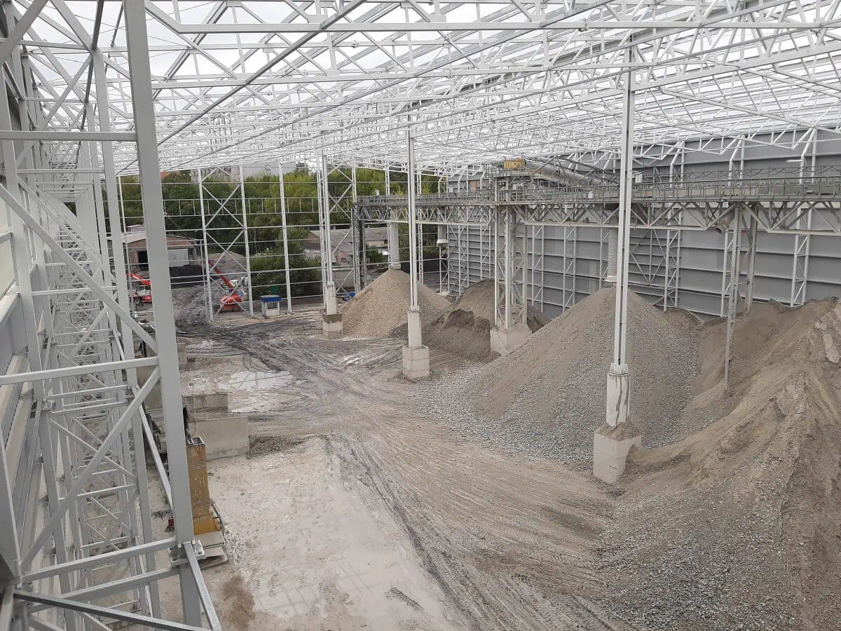 Hala stalowa, dwunawowa o funkcji magazynu buforowego oraz obudowy taśmociągów transportowych w cementowni Odra w Opolu. Rozpiętość statyczna nawy 26,65m, długość obiektu 90,01m i wysokość w okapie 21,10m. Z racji dużej wysokości obiektu wszystkie słupy zaprojektowano jako dwugałęziowe.