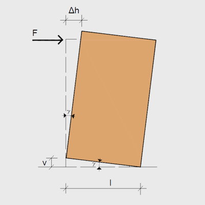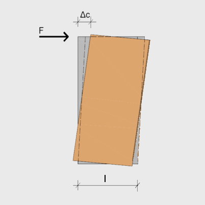 Sprężyste przemieszczenie poziome drewnianej ściany wykonanej w technologii szkieletowej, która obciążona jest siłą poziomą, może zostać obliczone jako suma następujących deformacji: