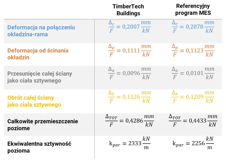Wyniki uzyskane za pomocą programu TimberTech Buildings, pomimo zastosowania prostszego modelu, odznaczają się bardzo dużą zbieżnością (maksymalne różnice na poziomie 2%), przy znacznie mniejszym nakładzie czasowym na definicję i analizę modelu.