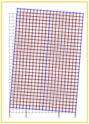 Zamodelowanie ściany w konstrukcji lekkiego szkieletu drewnianego za pomocą programu MES jest zadaniem dość skomplikowanym, zwłaszcza jeżeli chodzi o odwzorowanie sztywności poszycia i łączników. Poniżej przykładowe części z jakich można zamodelować taką ścianę, aby obliczyć jej sztywność poziomą: