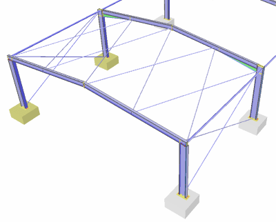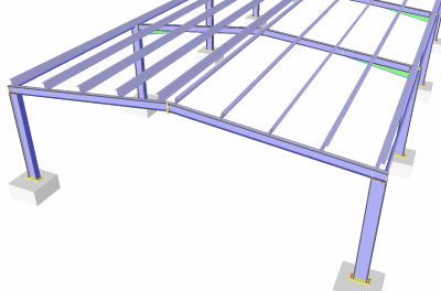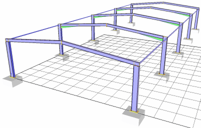 Automatycznie generuje całą halę ze wszystkimi połączeniami i fundamentami. Definicja odbywa się poprzez określenie takich parametrów jak długość i szerokość hali, geometria ram szczytowych i wewnętrznych, liczba i rozstaw ram, nawy boczne oraz typy połączeń.